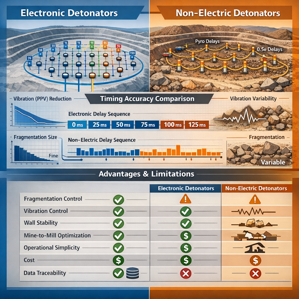 In modern blasting, the transition from traditional non-electric systems (such as shock tubes or detonating cords) to electronic detonators marks ...Read more