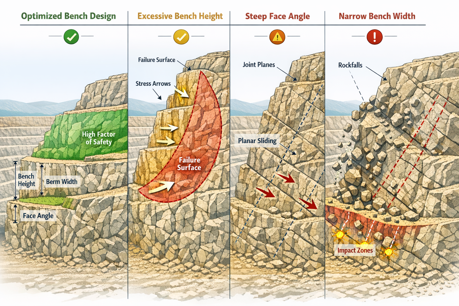In open-pit mining and civil engineering, the configuration of benches, comprising their height, width, and face angle, is the primary ...Read more