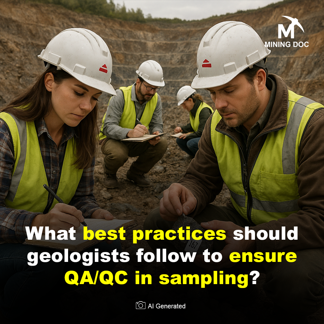 Geologists ensure QA/QC in sampling by implementing systematic protocols to minimize errors, contamination, and bias throughout the process. These practices draw from established frameworks like the Theory of Sampling (TOS) and industry standards from organizations such as AusIMM and SRK Consulting.​